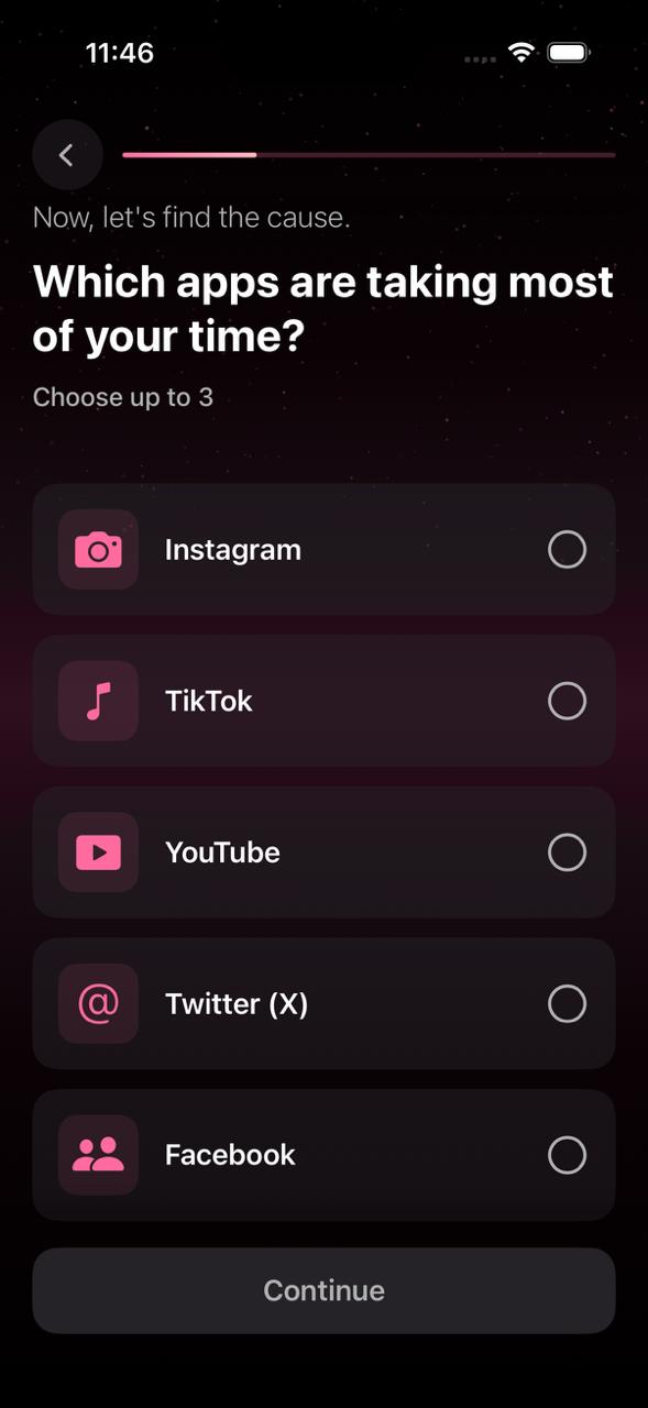 Select Instagram, TikTok, or other apps and websites you want to pause. Gentle accountability—just a moment of care before you scroll.